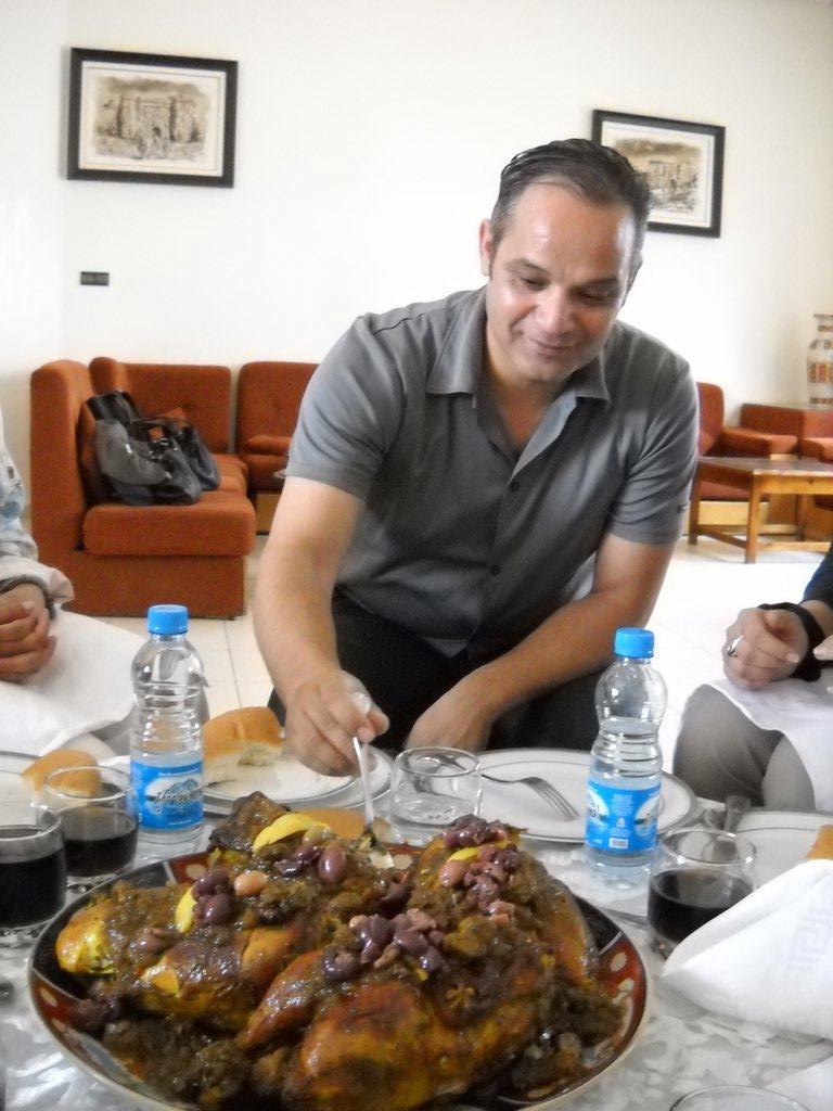 Après de magnifiques crudités, on nous sert le menu de fête : un poulet aux citrons et des fruits délicieux.